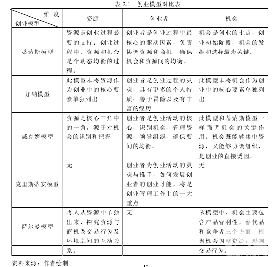創(chuàng)業(yè)現(xiàn)象起步較早,開始于 18 世紀,但得到快速發(fā)展的時間實在 20 世紀 80年代,創(chuàng)業(yè)現(xiàn)象得到越來越多人的關(guān)注,并激發(fā)了研究熱潮。在這些研究中,一些學(xué)者提出了很多獨特的見解和經(jīng)典的模型,比如蒂蒙斯(Timmons)創(chuàng)業(yè)學(xué)模型、克里斯蒂安(Christian)的創(chuàng)業(yè)學(xué)模型、加納(Gartner)創(chuàng)業(yè)學(xué)模型、佐拉(Zahra)和喬治亞(George)的創(chuàng)業(yè)模型等已成為創(chuàng)業(yè)學(xué)研究的主要理論依據(jù),本節(jié)主要對這些經(jīng)典模型進行梳理和比較。 要對這些模型進行比較,首先要建立一個維度,及從哪些方面進行對比。本人擬從資源、機會和創(chuàng)業(yè)者三個維度來比較創(chuàng)業(yè)模型間的異同點,已期能夠找出模型之間的異同點,更深入的了解這些模型。 根據(jù)基于機會、創(chuàng)業(yè)者及資源三個維度對國內(nèi)外創(chuàng)業(yè)模型和比較,我們發(fā)現(xiàn)了模型之間的一些異同點: 首先、所有模型均是動態(tài)的,在動態(tài)中實現(xiàn)了各個創(chuàng)業(yè)要素的聯(lián)系。 其次、蒂蒙斯模型中,克里斯蒂模型所強調(diào)的創(chuàng)業(yè)者與新事業(yè)的互動,其內(nèi)涵正好可以蒂蒙斯模型的機會、資源、團隊三要素的互動關(guān)系加以說明。而蒂蒙斯模型強調(diào)創(chuàng)業(yè)系統(tǒng)的動態(tài)平衡問題,克里斯蒂模型則是以重視創(chuàng)業(yè)流程管理來表現(xiàn)。而創(chuàng)業(yè)者被普遍認為是創(chuàng)業(yè)過程中最為核心的因素。在蒂蒙斯、加納、克里斯蒂、威克姆等模型中都認為創(chuàng)業(yè)者是創(chuàng)業(yè)過程的決定性因素,維持了資源、機會及環(huán)境之間的協(xié)調(diào)發(fā)展,確保創(chuàng)業(yè)的順利開展。 最后,國內(nèi)創(chuàng)業(yè)模型源于國外的經(jīng)典模型,但卻是基于中國情景的,具有典型的國家特性和民族特性。