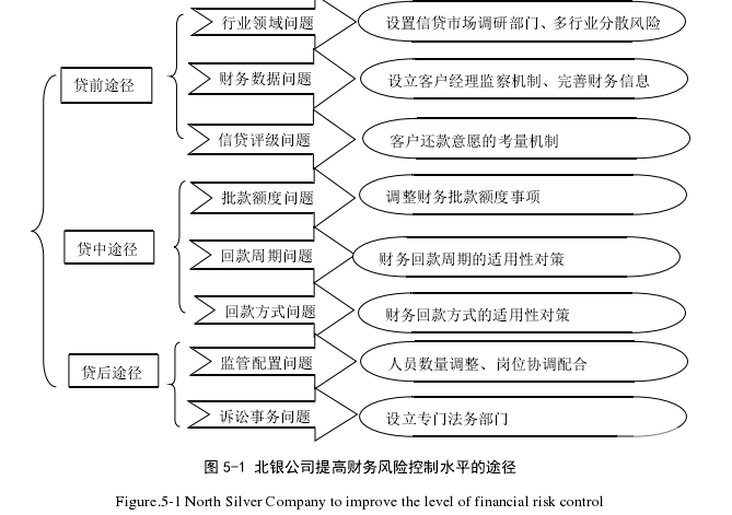 為了提升北銀公司信用貸款業(yè)務(wù)的財(cái)務(wù)風(fēng)險(xiǎn)控制水平,需要對(duì)北銀公司信用貸款業(yè)務(wù)的貸前審查、貸中批放、貸后管理三個(gè)環(huán)節(jié)中存在的風(fēng)險(xiǎn)控制問(wèn)題找到相應(yīng)的解決途徑。因而需要在北銀公司信用貸款業(yè)務(wù)的每一個(gè)風(fēng)險(xiǎn)控制環(huán)節(jié)中去合理確定財(cái)務(wù)風(fēng)險(xiǎn)控制目標(biāo)。第一,在貸前審查環(huán)節(jié)中做到剔除不良行業(yè)領(lǐng)域、提高財(cái)務(wù)數(shù)據(jù)可靠性、提升財(cái)務(wù)信貸評(píng)級(jí)的準(zhǔn)確性,為其業(yè)務(wù)的開(kāi)展做好第一個(gè)環(huán)節(jié)上的財(cái)務(wù)風(fēng)險(xiǎn)保障工作;第二,在貸中批放業(yè)務(wù)環(huán)節(jié)中做到合理制定財(cái)務(wù)批款額度、財(cái)務(wù)回款周期、財(cái)務(wù)回款方式,在實(shí)現(xiàn)客戶用款與北銀公司回款雙贏的同時(shí),做好第二個(gè)環(huán)節(jié)上的財(cái)務(wù)風(fēng)險(xiǎn)保障工作;最后,在貸后管理環(huán)節(jié)中實(shí)現(xiàn)財(cái)務(wù)監(jiān)管人員配置合理、財(cái)務(wù)回款案件訴訟成功率提升,為最終財(cái)務(wù)回款做好第三層風(fēng)險(xiǎn)保障工作。 為提升北銀消費(fèi)金融公司信用貸款業(yè)務(wù)的整體財(cái)務(wù)風(fēng)險(xiǎn)控制水平,需要依次解決其貸前審查環(huán)節(jié)、貸中批放環(huán)節(jié)、貸后管理業(yè)務(wù)環(huán)節(jié)所存在的問(wèn)題。