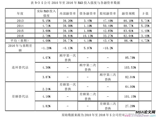 信息技術(shù)企業(yè)由于其獨有特點,在獲得高額回報之前需要大量的、持續(xù)的 R&D 支出投入,這樣才可以保證信息技術(shù)企業(yè)的創(chuàng)新驅(qū)動力永遠保持活力而不出現(xiàn)衰竭。而大規(guī)模的 R&D 支出就依靠穩(wěn)定的資金供給作為保證。那么各項融資方式就是解決資金供給問題的強有力武器,但是如何配置企業(yè)融資結(jié)構(gòu)就需要多方面進行考慮。信息技術(shù)企業(yè)由于產(chǎn)品、回報率、發(fā)展周期不盡相同的,那么企業(yè)管理者就需要了解信息技術(shù)企業(yè)的產(chǎn)品特征、R&D 投入規(guī)模需求、市場上同類型企業(yè)的發(fā)展現(xiàn)狀以及當前經(jīng)營狀態(tài)對融資方式進行選擇。本文結(jié)合信息技術(shù)企業(yè)不同融資方式對 R&D 投入強度的普遍作用效果,對信息技術(shù)企業(yè),特別是針對于 S 公司的融資策略提出基礎建議。(1)理論上,企業(yè)在選擇融資時應當遵循其行業(yè)特征。信息技術(shù)企業(yè)比普通的傳統(tǒng)行業(yè)企業(yè)融資更加困難,因為該類企業(yè)在經(jīng)營過程中面臨更多的風險,所以就必須通過較低的財務風險來加以平衡。也就是說,S 公司應更多的運用權(quán)益資金彌補研發(fā)活動的彌補中。(2)應重視企業(yè)的自有資金融資、運用風險投資資金等權(quán)益資本進行融資,除此之外還應該合理配置一定比例的債務融資,增加企業(yè)信用的積累。即 S 公司應合理運用債務融資的稅盾效應,建立均衡的融資結(jié)構(gòu)解決企業(yè)資金壓力。(3)在現(xiàn)實的市場環(huán)境中,不同的信息技術(shù)企業(yè)的融資策略是千差萬別的,S 公司不能僅僅通過理論研究而做出實際決策,應該結(jié)合自身的企業(yè)特點以及市場環(huán)境,分別進行橫、縱向分析,通過綜合考量后再做出相關決定。本文為了使融資策略對 R&D 投入強度的影響具有可比性,先參考市場中與 S 公司類似的其他企業(yè)做實證檢驗進行對比分析,得出普遍規(guī)律,然后選取 S 公司作為個體案例進行深入分析。通過應用差額分析法計算相關財務數(shù)據(jù),分析各融資方式對 R&D 投入的刺激程度不盡相同,為后續(xù)制定 S 公司融資策略提供決策支持。本文仍存在很多不足之處。比如,除了財務數(shù)據(jù)作為決策支持要素以外,管理者對于公司在市場中的知名度的擴張、對于自身經(jīng)營狀況的評估、研發(fā)產(chǎn)品市場化程度、管理者對風險的偏好程度以及市場環(huán)境、宏觀經(jīng)濟環(huán)境等都會影響企業(yè)搭建融資結(jié)構(gòu)。所以在企業(yè)進行融資決策時除了參考數(shù)據(jù)計算結(jié)果還應該綜合以上主觀因素進行綜合考慮,而不能紙上談兵。最后,由于本人的研究能力以及專業(yè)水平十分有限,導致對研究主題的認知存在許多不足之處,期待各位專家學者對本文不足之處進行批評和指正。
