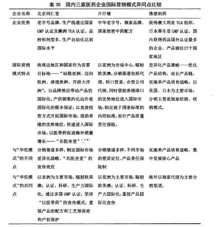 個案分析與行業(yè)數(shù)據(jù)分析相比,具有更加深入、具體、全面、以小見大等研究方面的優(yōu)勢,但個案研究結(jié)果是否適用于行業(yè)則需要驗證。通過對比分析方面,設(shè)立參考組進(jìn)行分析總結(jié),有效提髙個案分析結(jié)果的可信度。在上一章中,通過理論分析、訪談對“華倫模式”核心組成部分,即“五大戰(zhàn)略”的戰(zhàn)略目的和動因進(jìn)行分析,利用“關(guān)鍵成功因素分析法”構(gòu)建指標(biāo)體系并通過實證分析法進(jìn)行驗證,結(jié)果顯示宣傳投入和代理商銷售能力是影響產(chǎn)品銷售績效的關(guān)鍵成功因素。但“華佗模式”的關(guān)鍵成功因素分析結(jié)果是否適用于中醫(yī)藥企業(yè)的中成藥銷售,需要通過對比分析進(jìn)行客觀的檢驗。為驗證“華佗模式”國際營銷分析結(jié)果的可信度,本章承接第三章內(nèi)容進(jìn)行對比分析。本章采用正向?qū)Ρ鹊姆椒?,將北京同仁堂、潭州片仔癀藥業(yè)股份有限公司、蘭州佛慈制藥股份有限公司國際營銷模式與“華佗模式”進(jìn)行對比分析。選取這三家企業(yè)有兩個原因:第一,這三家企業(yè)銷售的產(chǎn)品與“華佗再造丸”有共通性——中成藥、中醫(yī)藥企業(yè)、藥品配置源于百年藥方,保證研究對象在企業(yè)類型、產(chǎn)品品類、市場優(yōu)勢具有同等條件,符合同級可比的前提條件;第二,三家企業(yè)的國際營銷模式是近幾年來國內(nèi)選取國內(nèi)學(xué)者研究最為集中的研究對象,有大量文獻(xiàn)資料可供參考,保證對比分析結(jié)果的客觀性和有效性。下文將從簡要介紹三家企業(yè)國際營銷現(xiàn)狀開始,通過文獻(xiàn)研究歸納出三家企業(yè)的國際營銷優(yōu)勢、特點,與“華佗模式”對比的異同點,最終總結(jié)出四家企業(yè)的國際營銷模式成功的共通點及華佗模式”獨特的優(yōu)點。