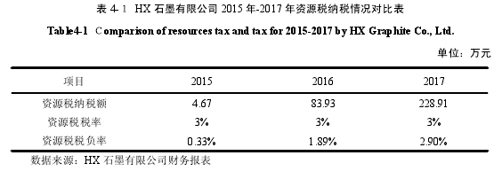 (3)通過對 HX 石墨有限公司的資源稅、環(huán)境保護稅、增值稅、企業(yè)所得稅等稅種展開納稅籌劃設(shè)計,對主體稅種進行詳細分析,減少主體稅種的應(yīng)納稅額,可以有效降低稅負。