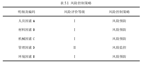 本文根據(jù)風(fēng)險等級的不同給出不同的解決措施,Ⅰ級風(fēng)險采取忽略方式、Ⅱ級風(fēng)險采取關(guān)注策略、Ⅲ級和Ⅳ級風(fēng)險則財務(wù)監(jiān)控和控制策略,從而達(dá)到提高控制風(fēng)險效果的目的。(1)風(fēng)險忽略策略。當(dāng)施工工程處在第Ⅳ級風(fēng)險中時,就應(yīng)該及時采取風(fēng)險忽略策略。一般而言,等級低的風(fēng)險并不會對工程施工造成嚴(yán)重負(fù)面影響,因此處理過程中應(yīng)該將日常管理作為工作要點,同時對項目施工進(jìn)行階段性評估,實時關(guān)注影響工程施工進(jìn)展的因素。(2)風(fēng)險關(guān)注策略。當(dāng)施工工程體現(xiàn)出第Ⅲ級風(fēng)險時,應(yīng)該采取風(fēng)險關(guān)注措施。一般而言,第Ⅲ級風(fēng)險在原則上不會對施工工程造成嚴(yán)重的損失,但是其中極有可能會存在個別風(fēng)險系數(shù)較高的因素,而個別因素往往會對施工工程無法順利完工。因此從施工項目的內(nèi)外環(huán)境出發(fā)以及關(guān)注各類現(xiàn)存風(fēng)險是保證整體工程項目能夠順利開展的第Ⅱ級風(fēng)險等級在項目中出現(xiàn)時,則應(yīng)該對其進(jìn)行監(jiān)控。(3)風(fēng)險監(jiān)控。當(dāng)施工項目的風(fēng)險等級在第Ⅱ級風(fēng)險中徘徊時,如果能對其進(jìn)行有效監(jiān)控,則極有可能能夠?qū)L(fēng)險控制在較低范圍內(nèi),反之則會帶來更大風(fēng)險??梢?,對項目風(fēng)險監(jiān)控是十分有必要的,當(dāng)發(fā)現(xiàn)項目的內(nèi)外風(fēng)險出現(xiàn)變動時,應(yīng)及時采取監(jiān)控措施,將風(fēng)險控制在可控范圍,從而避免風(fēng)險升級導(dǎo)致施工受阻。(4)風(fēng)險預(yù)防策略。當(dāng)項目中出現(xiàn)第Ⅰ級風(fēng)險時,應(yīng)該及時根據(jù)項目改變風(fēng)險后果的性質(zhì)、大小以及風(fēng)險出現(xiàn)頻次三個方面,實施風(fēng)險降低、風(fēng)險分擔(dān)以及風(fēng)險回避措施。