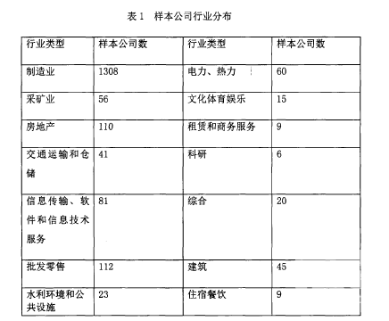 本文數(shù)據(jù)來自國泰安數(shù)據(jù)庫,為了研究高管變更與真實(shí)盈余管理活動(dòng)的關(guān)系,所需要的數(shù)據(jù)是第一年發(fā)生變更、以后的兩個(gè)會(huì)計(jì)年度都沒有發(fā)生變更的,然后利用SPSS 17.0對相關(guān)數(shù)據(jù)進(jìn)行回歸分析。所以本文選取2011年到2013年三年的數(shù)據(jù),在這些數(shù)據(jù)的基礎(chǔ)上,將金融保險(xiǎn)、數(shù)據(jù)不健全、2011年到2013年連續(xù)發(fā)生高管變更的行業(yè)剔除,最后得到1936個(gè)研究樣本。也就是說這1936家公司是在2011年發(fā)生總經(jīng)理以上高管變更,而2012年和2013年都沒有發(fā)生變更的這些樣本數(shù)據(jù)在各個(gè)行業(yè)都有分布,說明樣本是有代表性的。我們可以在表1中觀察到樣本公司的分布情況,各個(gè)行業(yè)都有涉及:從這張表中可以看出,2012年異常的經(jīng)營現(xiàn)金流量和異??刹倏匦再M(fèi)用都是負(fù)數(shù),異常的生產(chǎn)成本為正,真實(shí)盈余管理的均值也是為正,說明高管變更的第二年,管理者有傾向利用真實(shí)盈余管理的手段來調(diào)節(jié)盈余。