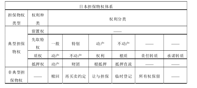 德國未規(guī)定動(dòng)產(chǎn)抵押,立法確定動(dòng)產(chǎn)上僅可設(shè)定質(zhì)押,但僅憑質(zhì)押無法完全解決其動(dòng)產(chǎn)擔(dān)保問題,因此大量產(chǎn)生了以讓渡所有權(quán)方式進(jìn)行擔(dān)保的現(xiàn)象。雖然德國的讓與擔(dān)保制度以判例的方式存在,但立法中仍有承認(rèn)讓與擔(dān)保合法性的條款。①德國還使用《租稅調(diào)整法》、《和議法》等單行法對(duì)讓與擔(dān)保的效力進(jìn)行了確認(rèn)。固然我們可以采取此種立法例來設(shè)立讓與擔(dān)保,但大量的既有制度比如動(dòng)產(chǎn)抵押將被替代或轉(zhuǎn)換其適用方式和范圍。故與本節(jié)考量的讓與擔(dān)保與我國現(xiàn)行法律體系之關(guān)系沒有比較、借鑒價(jià)值。 日本則既規(guī)定了動(dòng)產(chǎn)抵押、質(zhì)押,又以判例確認(rèn)了動(dòng)產(chǎn)讓與擔(dān)保,而我國也已規(guī)定了動(dòng)產(chǎn)抵押,故下文以日本的擔(dān)保物權(quán)體系與我國現(xiàn)行法律制度簡(jiǎn)要進(jìn)行比較,尋找讓與擔(dān)保設(shè)立的解決途徑: