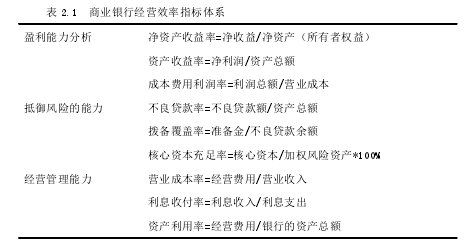 2 商業(yè)銀行經(jīng)營效率指標(biāo)體系的建立