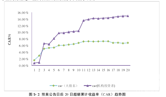 定向增發(fā)市場反應(yīng)分析定向增發(fā)宣告前后上市公司股價(jià)的反應(yīng),包括短期市場反應(yīng)和長期市場反應(yīng)。國外現(xiàn)有文獻(xiàn)對定向增發(fā)市場反應(yīng)的主要研究結(jié)論是:定向增發(fā)與其他股權(quán)再融資方式相反,具有短期正的市場反應(yīng)(宣告效應(yīng))。另外,具有不同背景的資本市場,對定向增發(fā)的市場反應(yīng)與解釋有所不同。 從對國內(nèi)外現(xiàn)有文獻(xiàn)的梳理結(jié)果來看,上市公司定向增發(fā)具有顯著積極、正面的市場反應(yīng)。國外對非公開發(fā)行的問題研究很早,積累了大量關(guān)于市場反應(yīng)的研究成果,來自多個(gè)國家的研究結(jié)論已支持上述觀點(diǎn)。如:Wruck(1989),Kato and Schallheim(1993)分別發(fā)現(xiàn)在美國、日本上市公司定向增發(fā)事件前后,市場的短期效應(yīng)顯著為正;國內(nèi)學(xué)者對市場反應(yīng)的研究集中于事件日后的“公告效應(yīng)”,所選擇的事件區(qū)間,計(jì)算方法不同,結(jié)論略有差別。陳陽(2007)、章衛(wèi)東(2007, 2008)、徐福壽(2010)等學(xué)者的實(shí)證研究均表明,上市公司定向增發(fā)后呈現(xiàn)顯著的正向的市場反應(yīng)。章衛(wèi)東(2007)對上市公司的增發(fā)后短期宣告效應(yīng)進(jìn)行實(shí)證研究,發(fā)現(xiàn)了增發(fā)公告后顯著正的市場反應(yīng);次年,對增發(fā)折扣率與增發(fā)后的股價(jià)關(guān)系進(jìn)行實(shí)證研究,以定向增發(fā)公告前后 35 天作為事件窗口,計(jì)算超額累計(jì)收益率,發(fā)現(xiàn)低折價(jià)率定向發(fā)行新股,公告效應(yīng)越大;王翠和賀柳(2009)用預(yù)案公告后(0,15)天的 CAR 作為宣告效應(yīng)變量比較研究定向增發(fā)和普通增發(fā)的區(qū)別,發(fā)現(xiàn)定向增發(fā)在(-1,1)區(qū)間內(nèi)存在顯著的正超額累積收益率;徐福壽(2010)用預(yù)案公告日作為事件日,發(fā)現(xiàn)預(yù)案公告前的超額累計(jì)收益率大于公告后超額累計(jì)收益率。