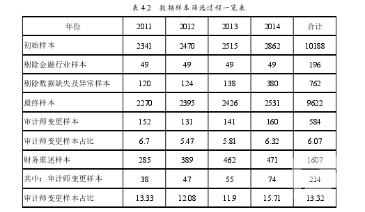 本文的研究目的在于探討財務重述對審計師變更的影響,同時也關注審計師聲譽對財務重述與審計師變更的作用,對三者之間的相關問題的研究具有理論和實踐雙重意義。從理論方面看,關于財務重述對審計師變更的影響的研究豐富了審計師的風險戰(zhàn)略管理、財務重述導致的經(jīng)濟后果、影響審計師變更的相關因素以及審計師的自身特征聲譽等方面的研究。審計師會采取改變審計收費、出具不同的審計意見報告以及辭聘等風險管理策略來表現(xiàn)風險判斷的結(jié)果,本文首先從財務重述對審計師變更的影響這一切入點發(fā)現(xiàn)事務所運用辭聘戰(zhàn)略是降低風險的風險管理戰(zhàn)略。同時本文補充了核心財務重述、影響凈利潤的財務重述、影響財務報告類型的財務重述等不同的財務重述類型對審計師變更的影響的相關研究,并且研究了審計師聲譽對兩者之間的作用關系。目前,國內(nèi)學者對財務重述、審計師聲譽與變更方面的研究較少,開展對其三者之間關系研究,不僅可以拓展當前對財務重述以及外部審計的研究新視野和新方向,也可以為建立更加規(guī)范的審計市場監(jiān)管制度提供理論依據(jù)。從實踐方面看,本文對會計師事務所以及信息使用者都有重要的意義,并且有助于有關部門完善相關的法律制度,加強監(jiān)管力度。從造成審計師變更的辭聘和解聘角度來看,審計師往往通過辭聘規(guī)避成本風險和監(jiān)管的風險訴訟,重述公司也通常通過解聘變更審計師獲得有利于自身利益的審計意見?;诖?,本文的研究有助于審計師有效的識別審計過程中的風險,正確的選擇恰當?shù)娘L險管理戰(zhàn)略,能夠促進會計師事務所培育審計師自身的聲譽、提高審計質(zhì)量,保證審計服務的品質(zhì),提升綜合職業(yè)能力,最終創(chuàng)造審計師的品牌效應,切實發(fā)揮其第三方的獨立性以及外部監(jiān)督角色的力量,從而防止上市公司不正當?shù)呢攧罩厥鲂袨?。與此同時,也有助于敦促上市公司提高信息披露的質(zhì)量,對充分保護投資者的利益方面起到了積極的作用。另外,能夠加快對財務重述和審計師變更的研究,完善審計師聲譽制度,為公平、健康、穩(wěn)定的市場競爭環(huán)境的形成增添力量。