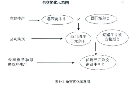 金江公司是首家在云南推廣土地綜合治理和利用的公司,即種植和養(yǎng)殖并行的立體循環(huán)種養(yǎng)殖模式,改善土壤肥力,提高農(nóng)產(chǎn)品產(chǎn)量和質(zhì)量。利用金江公司肉牛示范基地為孵化器,引進(jìn)國(guó)外優(yōu)質(zhì)高檔肉牛品種,發(fā)動(dòng)安寧市西南片區(qū)農(nóng)戶,大力推廣、試驗(yàn)雜交肉牛養(yǎng)殖與高檔水果種植相結(jié)合的資源經(jīng)濟(jì)循環(huán)生產(chǎn)模式公司的創(chuàng)業(yè)管理模式為:、技術(shù)方面:大規(guī)模凍精改良,極大地提高了牛種改良速度。提高情期受胎率至以上,繁殖率提高到°—加速牛群繁育速度。以“西門塔爾魯西黃牛美國(guó)短角牛”為公司肉牛品種改良技術(shù)路線,在省內(nèi)規(guī)模發(fā)展尚屬首例。技術(shù)路線:為了縮短三元雜交肉牛生產(chǎn)周期,本項(xiàng)目采用魯西黃牛和西門塔爾的二元雜交后代為種母牛,此時(shí)魯西黃牛及西門塔爾的遺傳基因各占當(dāng)用該二元雜交母牛和美國(guó)短角牛雜交后,產(chǎn)生的三元雜交后代就是本項(xiàng)目終端產(chǎn)品優(yōu)質(zhì)雜交肉牛。金江公司推行雜交肉牛養(yǎng)殖和高檔水果種植相結(jié)合的立體種養(yǎng)殖循環(huán)經(jīng)濟(jì)模式,具體是果樹墑間種植高產(chǎn)黑麥草,以草喂牛,牛糞經(jīng)發(fā)酵后再以農(nóng)家肥的形式給果樹和牧草施肥,如此循環(huán),無(wú)排放、無(wú)污染、無(wú)公害。再加上人,以牛肉和水果為食物,便構(gòu)成了一個(gè)完整的食物鏈循環(huán)。