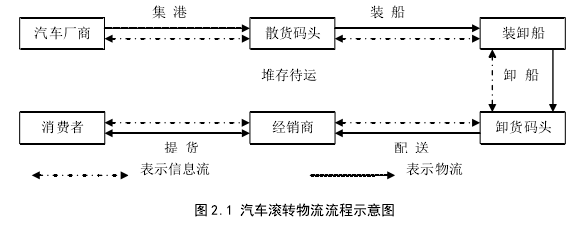 汽車產(chǎn)業(yè)是國家重要的工業(yè)產(chǎn)業(yè)支柱之一,關聯(lián)性大、滲透性強,其發(fā)展狀況不僅能夠代表工業(yè)發(fā)展水平的高低,更能帶動鋼鐵、電子、機械、化工等多個行業(yè)的發(fā)展,汽車工業(yè)所能產(chǎn)生的關聯(lián)效益是其自身效益的 3 倍,由其所帶動的就業(yè)比值更是達到了 1:7[1]。雖然當前我國經(jīng)濟發(fā)展正處于緩慢增長階段,但刺激消費等政策措施的出臺卻有利于汽車產(chǎn)業(yè)的發(fā)展。根據(jù)國家統(tǒng)計局數(shù)據(jù)顯示,2014 年,我國汽車產(chǎn)銷分別完成 2372.29 萬輛和 2349.19 萬輛,同比增長 7.26%和 6.86%,連續(xù) 6 年蟬聯(lián)全球第一。2015 年,雖然受 GDP 增速緩中趨穩(wěn)以及國家宏觀經(jīng)濟調控影響,汽車行業(yè)整體發(fā)展趨緩。但消費者對于乘用車市場的剛性需求仍將存在,因此乘用車消費仍會處于平穩(wěn)上升階段,全年預計銷量在 2125萬輛左右,增速 8%;而商務用車由于受到宏觀經(jīng)濟調控、消費投資等經(jīng)濟指標下滑,在未來一段時期仍將處于微增長狀態(tài),銷量在 388 萬輛左右,增速為2.4%。[2] 國內消費者對汽車的旺盛需求為汽車物流業(yè)的發(fā)展帶來了良好的發(fā)展機遇。在當前我國以經(jīng)濟型轎車為主流的汽車市場中,汽車生產(chǎn)企業(yè)對成本的敏感度日益提升,通過整合優(yōu)化來降低汽車生產(chǎn)成本也成為汽車生產(chǎn)企業(yè)參與市場競爭的有力武器。雖然目前汽車物流市場的業(yè)務總量已經(jīng)相當可觀,但如果從整個汽車物流運作成熟度來看,我國汽車物流的服務尚處于起步階段,尤其是隨著汽車流通量的提升,傳統(tǒng)的陸路(公路、鐵路)運輸在運輸成本高昂、社會資源占用量大、污染環(huán)境等方面的缺點越來越突出,此時水路滾裝運輸以其專業(yè)性強、運輸量大、費用低等優(yōu)勢引起了眾多汽車經(jīng)銷商的注意。[3]汽車滾裝運輸是汽車物流產(chǎn)業(yè)鏈的關鍵環(huán)節(jié),是以港口汽車滾裝運輸為主體,集陸上運輸、碼頭裝卸、信息傳輸、倉儲配送等環(huán)節(jié)于一體的整車物流方式。