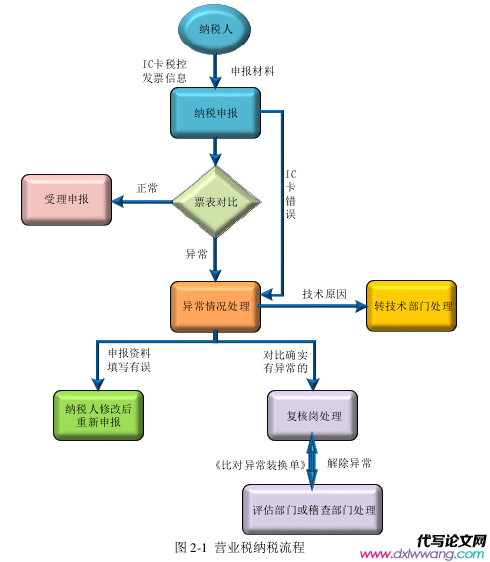 營業(yè)稅是指對在我國境內(nèi)提供勞務,非捐贈性轉(zhuǎn)讓無形資產(chǎn)和不動產(chǎn)征收的以營業(yè)額為基礎,乘以各行業(yè)相應稅率所應繳納的稅種。但上述營業(yè)稅概念是 2011 年“營改增”政策推行之前的定義,在今天看來已經(jīng)不合乎現(xiàn)狀,本小節(jié)主要目的在于比較稅收政策改革之前營業(yè)稅與增值稅的定義和區(qū)別,因此仍然沿用以前的營業(yè)稅定義。營業(yè)稅的稅收管轄部門是地方稅務機關,因此營業(yè)稅收入地方政府的主要收入來源。營業(yè)稅作為一種流轉(zhuǎn)稅,其征收范圍十分廣泛,征收環(huán)節(jié)層層相扣,計算方法比較簡單。建筑業(yè)在“營改增”之前按照 3%的稅率征收營業(yè)稅。但是營業(yè)稅的主要缺點是容易造成重復征稅,忽略企業(yè)本身的成本,以總營業(yè)額為基礎計算應納稅額,容易增加企業(yè)負擔,現(xiàn)代國際社會上的發(fā)達國家已經(jīng)相繼棄用營業(yè)稅,改征增值稅能更好的反映公平與效率的稅制原則。營業(yè)稅納稅流程如 2-1 圖所示。