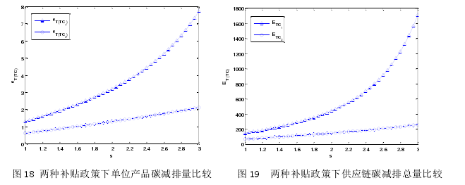 (1)無論是政府補貼企業(yè)還是消費者,三種合作策略下企業(yè)碳減排量和利潤、單位產(chǎn)品碳減排量、供應(yīng)鏈碳減排總量和利潤、產(chǎn)品產(chǎn)量都隨著政府補貼 s 增加而增加,一體化下最高;消費者實際支付的價格都隨著政府補貼的增加而降低,一體化下價格最低。綜上所述,供應(yīng)鏈企業(yè)應(yīng)當(dāng)選擇一體化合作策略。