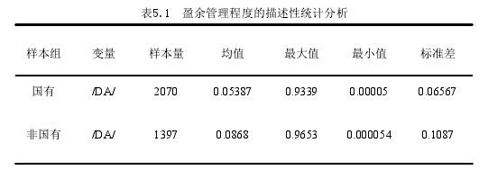 5.1 盈余管理程度分析