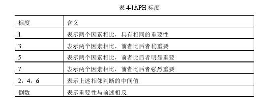 層次分析法發(fā)明于上世紀 70 年代,是一種定性與定量分析相結(jié)合的多目標決策分析方法[22]。該方法是將決策者的經(jīng)驗判斷給予量化,在目標(因素)結(jié)構(gòu)復雜而且缺乏必要的數(shù)據(jù)的情況下,使用此方法較為實用。層次分析法可以給出各個決策的權(quán)重,最終將權(quán)重相加得出依托決策者經(jīng)驗的相對量化的最優(yōu)決策。在確定各層次各因素之間的權(quán)重時,如果只是定性的結(jié)果,則常常不容易被別人接受,因而 Satty 學者等人提出一致矩陣法即[23]:(1)不把所有因素放在一起比較,而是兩兩相互比較,從而可以構(gòu)建對比矩陣。(2)使用相對尺度,運用相對尺度主要是解決由于各個準則的性質(zhì)和刻度不同而出現(xiàn)的難以比較的問題,提高判斷的準確度。然后連接各個層次。第二步,比較準則層中各個準則對目標層的目標權(quán)重。第三層方案層中每一個方案對第二層的準則層每一個元素的權(quán)重。每一個準則以及方案所具備的權(quán)重一般由實驗者主觀定性確定。例如:在選擇保險產(chǎn)品中,大部分人將單位保費價格作為第一考慮準則。本模型中,利用層次分析法可以在定性分析中給出具有理論支持的定量權(quán)重。第三步,將第三層方案層對第二層準則層的權(quán)重,與第二層準則層對第一層目標層的權(quán)重進行綜合。第四步,最終得出方案層對目標層的權(quán)重,權(quán)重最高的則為最優(yōu)方案,從而作出決策。
