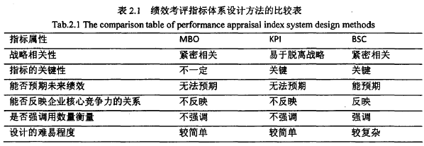 ?360°績效考評反饋體系、目標管理指標法、平衡計分卡法及關(guān)鍵績效指標法是目前應(yīng)用比較廣泛的四種績效考評方法。通過前面的比較分析,我們可以發(fā)現(xiàn)平衡計分卡法和KPI法都是對目標管理法的延伸和發(fā)展,而平衡計分卡法又是在KPI指標設(shè)計方法的基礎(chǔ)上的再發(fā)展和再升華,在設(shè)計指標體系時可以根據(jù)具體情況采用不同的指標體系。360'考評反饋體系是在考評工作的具體實施時采用的方法,主要用于數(shù)據(jù)的收集工作,需要與前面三種績效考評指標設(shè)計法結(jié)合使用。關(guān)于MBO、KPI、BSC三種方法的具體比較見下表2.1: