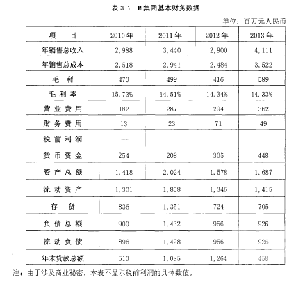 2.2 EM集團(tuán)相關(guān)財(cái)務(wù)數(shù)據(jù)分析