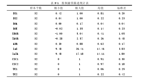 (1)首先進(jìn)行描述性統(tǒng)計分析,對樣本數(shù)據(jù)的構(gòu)成、變量的分布進(jìn)行初步分析。概括反映變量之間的關(guān)系。對股權(quán)結(jié)構(gòu)給并購融資方式產(chǎn)生的影響有初步了解。