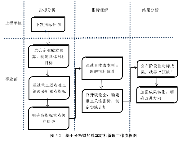 (1)重新設(shè)定事業(yè)部對標(biāo)管理流程 對事業(yè)部成本對標(biāo)管理流程進(jìn)行了優(yōu)化,由“自下而上”轉(zhuǎn)變?yōu)?ldquo;自上而下”,由事業(yè)部年初制定標(biāo)桿,下達(dá)給各二級對標(biāo)單位執(zhí)行。使事業(yè)部成本對標(biāo)管理工作更具有成本導(dǎo)向性和先進(jìn)性,也使各對標(biāo)二級單位對標(biāo)目標(biāo)明確,有利于成本發(fā)生額的管控。
