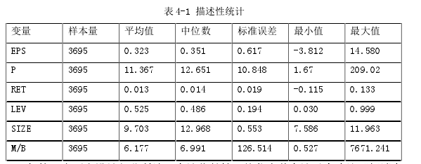 本文的原始研究樣本采用的是最近五年即 2010 年至 2014 年我國(guó)滬市 A 股資本市場(chǎng)上全部的上市公司。然后根據(jù)以下原則對(duì)原始樣本進(jìn)行了剔除: (1)剔除掉數(shù)據(jù)不全的公司; (2)剔除掉選用期間被特別處理(ST)和特別轉(zhuǎn)讓?zhuān)≒T)的公司; (3)剔除掉選用期間首次發(fā)行股票的公司; (4)剔除掉金融類(lèi)的公司。 經(jīng)過(guò)以上的剔除,739 家上市公司符合要求,共得到完整的樣本 3695 個(gè)。本文中所使用的數(shù)據(jù)均來(lái)源于銳思數(shù)據(jù)庫(kù),經(jīng)濟(jì)景氣指數(shù)的數(shù)據(jù)來(lái)源于國(guó)家統(tǒng)計(jì)局。所用統(tǒng)計(jì)軟件為 STATA 12.0。 如第三章研究設(shè)計(jì)部分所述,會(huì)計(jì)穩(wěn)健性,就代表著會(huì)計(jì)盈余確認(rèn)“壞消息”比“好消息”更加及時(shí),其中“壞消息”指損失,“好消息”指收益。如果出現(xiàn)會(huì)計(jì)盈余的均值小于中位數(shù)的情況,這種左偏傾向就證明了會(huì)計(jì)穩(wěn)健性的存在。從上表 4-1 我們可以看出,RET 、EPS 和 P 的均值都比中位數(shù)小,表現(xiàn)出了左偏傾向。根據(jù)以上的描述性統(tǒng)計(jì)結(jié)果,我國(guó)上市公司整體上存在會(huì)計(jì)盈余穩(wěn)健性。